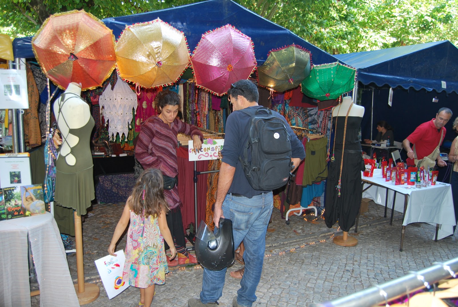 "Somos um projecto de venda de roupa, acessórios, bijutaria, artesanato e decoração provenientes da Índia, Nepal e Tailândia. A apresentação do nosso stand consiste essencialmente em roupa alternativa, diferente, com um estilo único e próprio que consegue atrair todo o tipo de pessoas, desde a pessoa mais exigente à mais simples, isto porque temos critérios de selecção de estilos, padrões e tecidos muito exigentes tentando sempre apresentar ao mercado peças únicas, confortáveis e irreverentes. No artesanato e decoração temos peças mais tradicionais, criando assim um stand com um ambiente híbrido, uma mescla entre novo e o clássico. Esta é a filosofia da Cosmic Tribe, juntar vários estilos no mesmo espaço. Todas as peças expostas no stand foram escolhidas por nós nos países de origem, sendo algumas modificadas e algumas mesmo criadas por nós." www.cosmictribeproject.blogspot.com